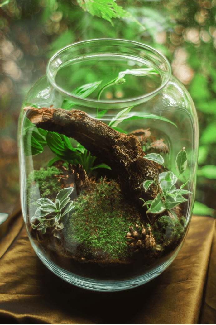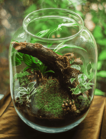 Os terrários são pequenos ecossistemas criados dentro de recipientes de vidro, onde plantas convivem em equilíbrio, formando verdadeiros jardins em miniatura. Além de decorativos, exigem poucos cuidados e permitem observar a beleza da natureza de perto, trazendo um toque verde e elegante a qualquer espaço. Podemos personalizar um terrário para que seja algo muito especial para quem o receber.
