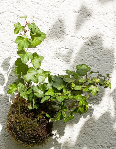 Cada criação é feita à mão, com cuidado e atenção ao detalhe, respeitando o ritmo natural de cada planta. Trabalhamos com técnicas tradicionais, como a arte japonesa das kokedamas, mas damos sempre um toque artístico e moderno, transformando cada peça num objeto decorativo cheio de significado.